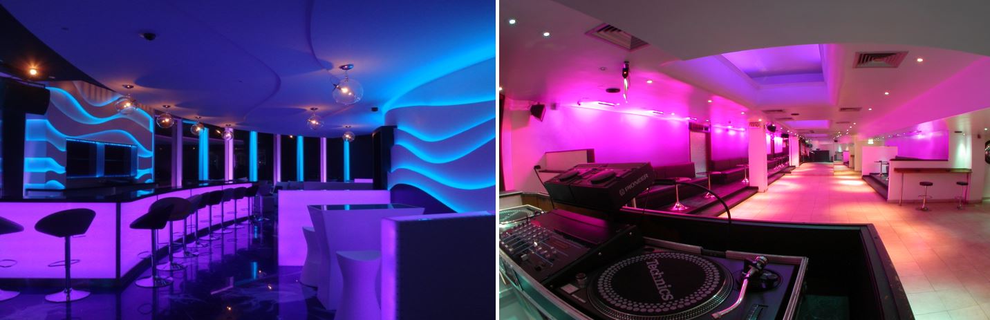 GHS supply and design lighting for all types of bar projects from pubs and clubs to hospitality bars, there are various options available when designing bar lighting, such as colour change RGB LED strip lighting, LED dimmers, ceiling lighting, mood lighting, and under cabinet and under bar lighting.