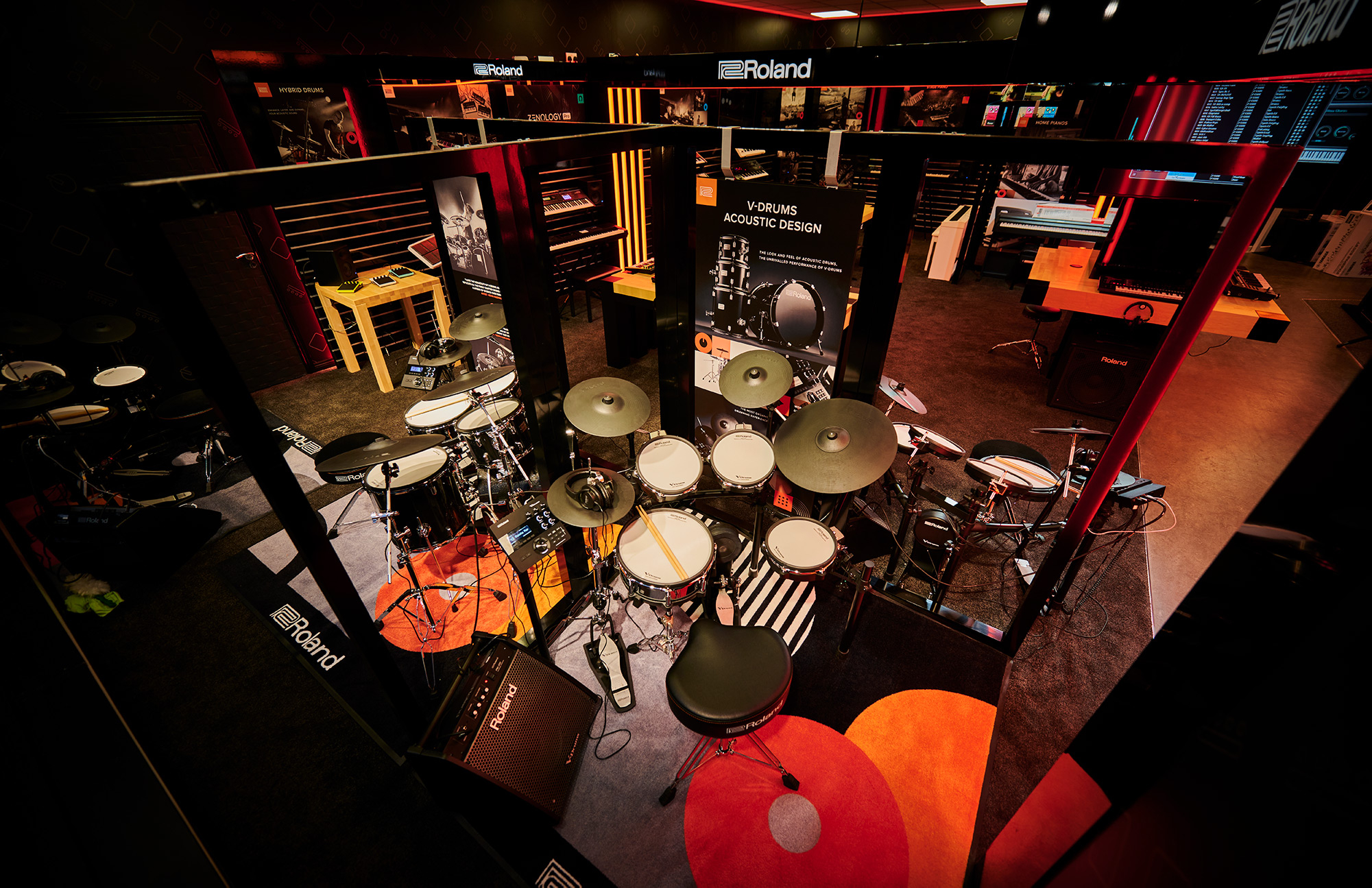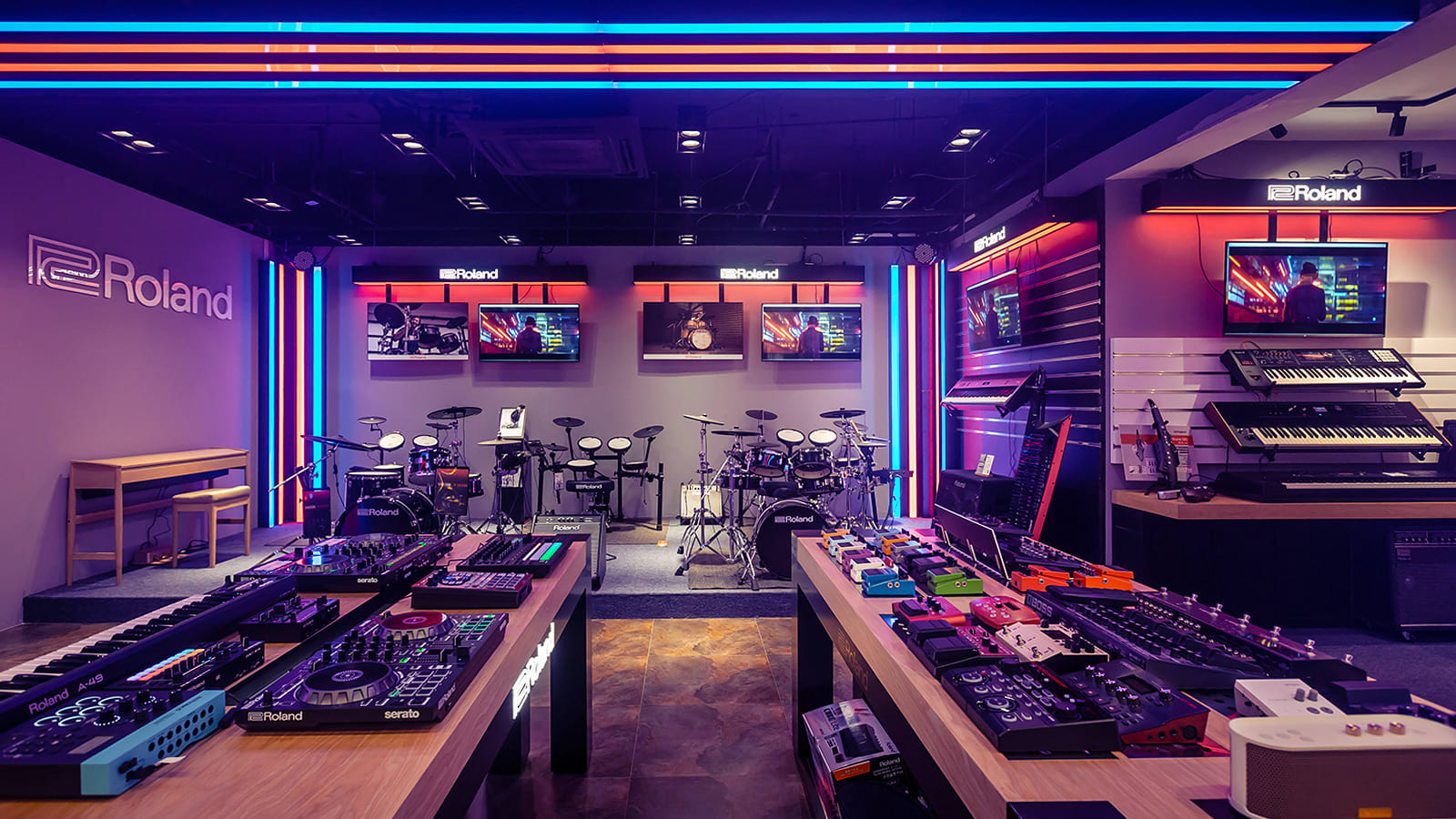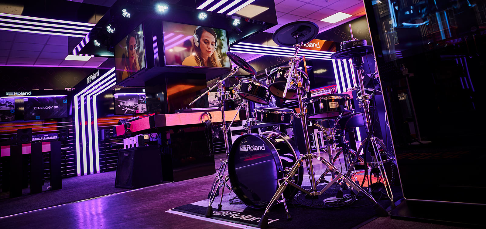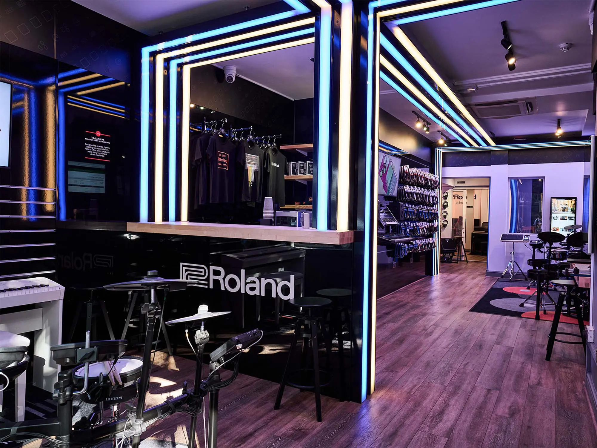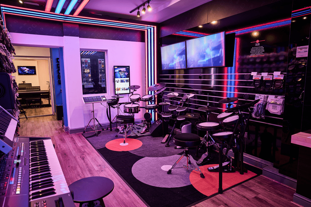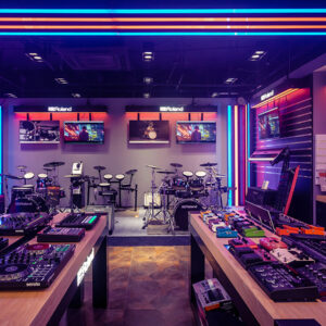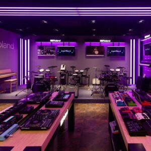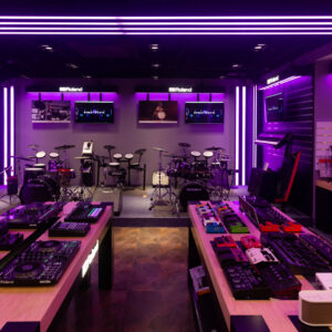 GHS Special Projects are delighted to have designed and supplied specialist light for Roland retail stores globally. The project scope was to use lighting to define different departments and to highlight their many of products within a given retail space. New Roland Showroom Opens in Iconic Central London Location. Roland Corporation, together with Outernet London, announce the opening of a brand-new Roland Store—a cutting-edge music showroom in the heart of London’s iconic Denmark Street.
