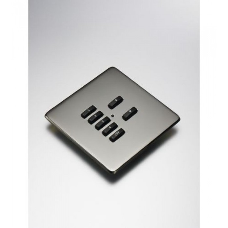 The Rako WCM-070 is a hard wired 7 button push button control module that has several fixing options. Based upon the widely used 50x50mm Euro Module switch plate accessory standard. Rako flat plate and screwless switch plate kits are available in a selection of finishes including: White, Brushed, Stainless Steel, Mirrored Stainless Steel, Polished Brass, Black Nickel