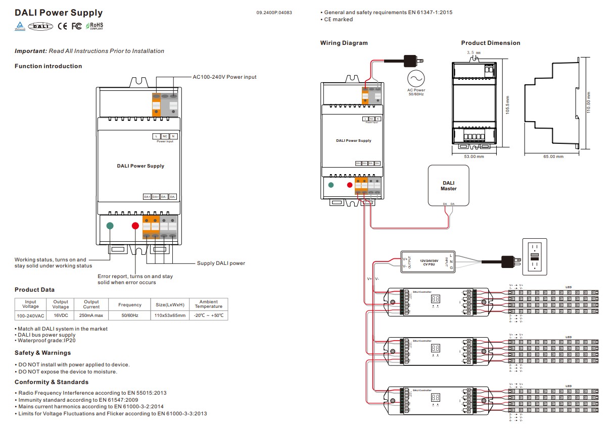 • DALI power supply designed with compact size and wide range input voltage 100~240VAC with 250mA output current