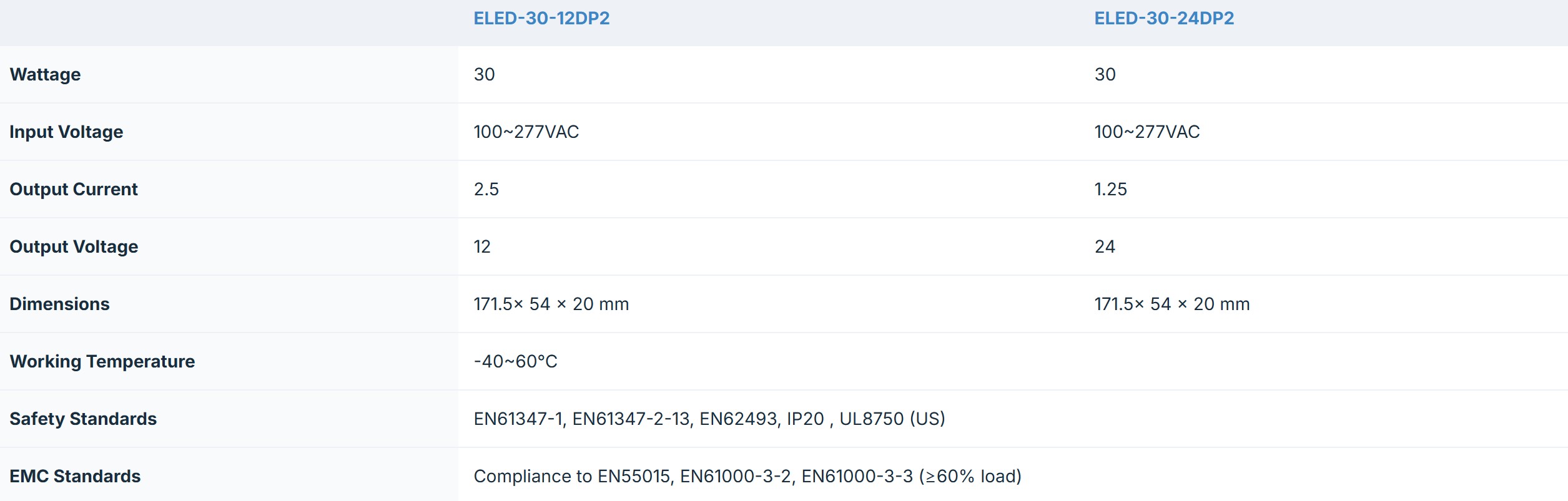- ☑️ Output Voltage Options: 12V (ELED-60-DP2-12) / 24V (ELED-60-DP2-24)