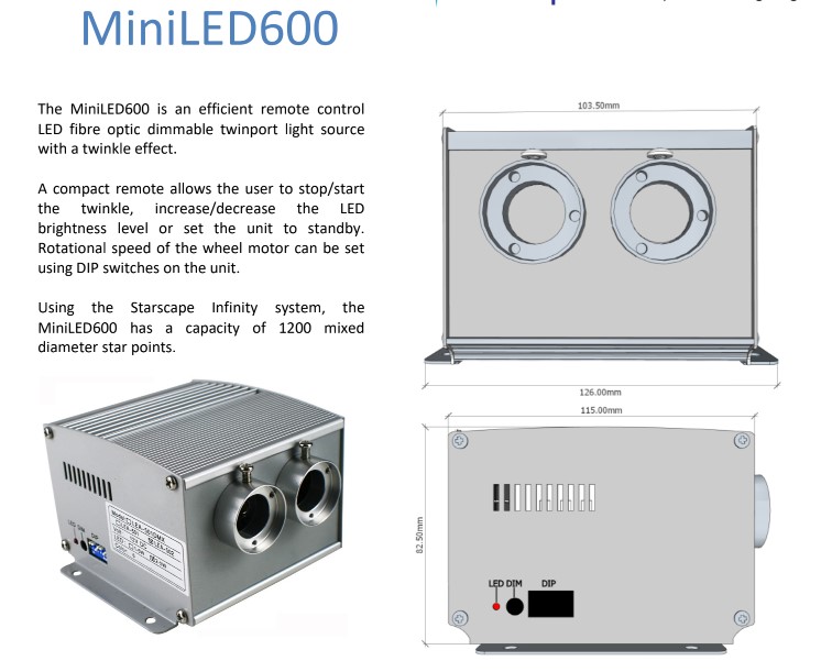 The Maxi 700 kit contains 700 fibres optics.  A complete package with stars with a choice of single or mix length fibre optics and twin LED light source. As standard, fibres are supplied in bundles of mixed diameter star fibres (0.50, 0.75mm and 1mm) which create the 3D visual effect when installed.